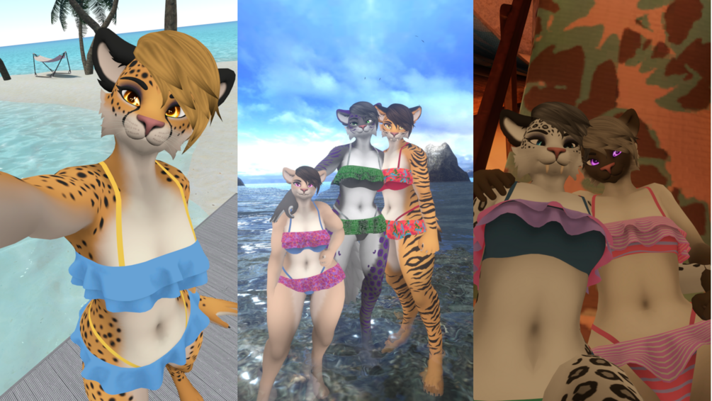 Prepare for some fun in the sun with this frilled swimsuit bikini. Use some of the included materials to set up a quick fit, or use the included substance files to dial in your perfect look. Instillation is easy, by utilizing VRCFury this outfit can be easily installed onto Ghostly's Female Felines/Wildcats by just drag & dropping the included prefabs.